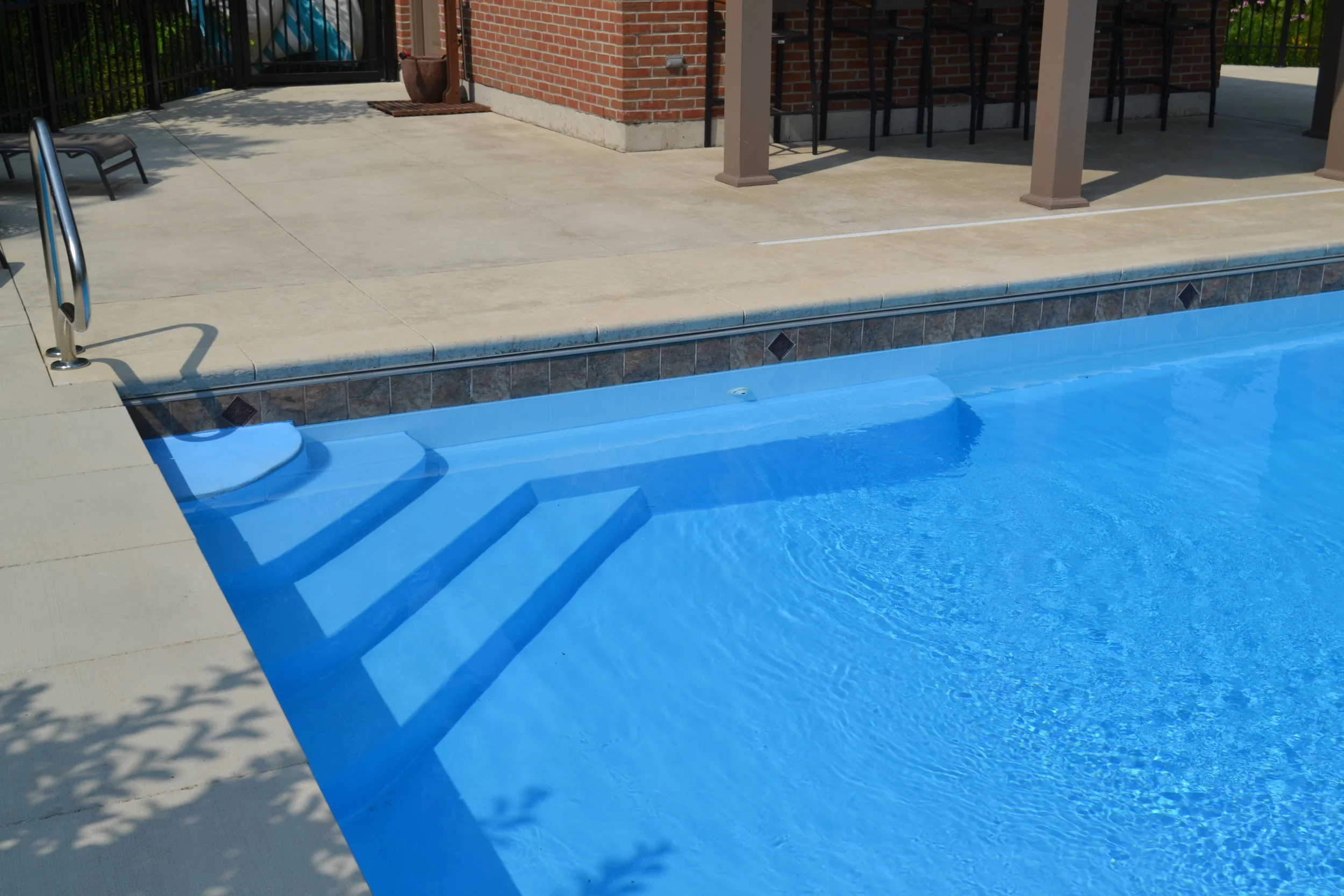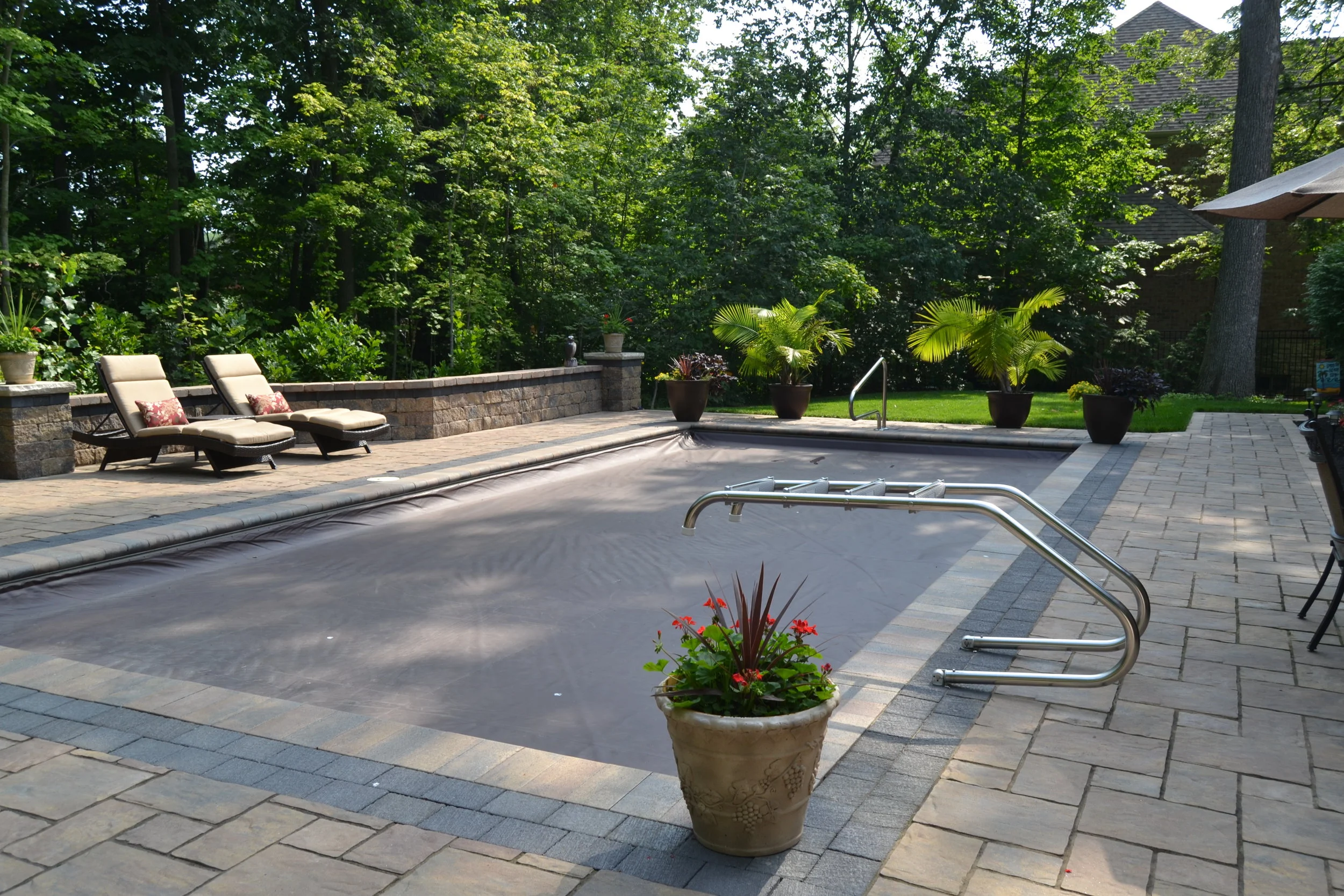 Ft. Wayne pool with undertrack automatic cover, corner step and recessed ladder