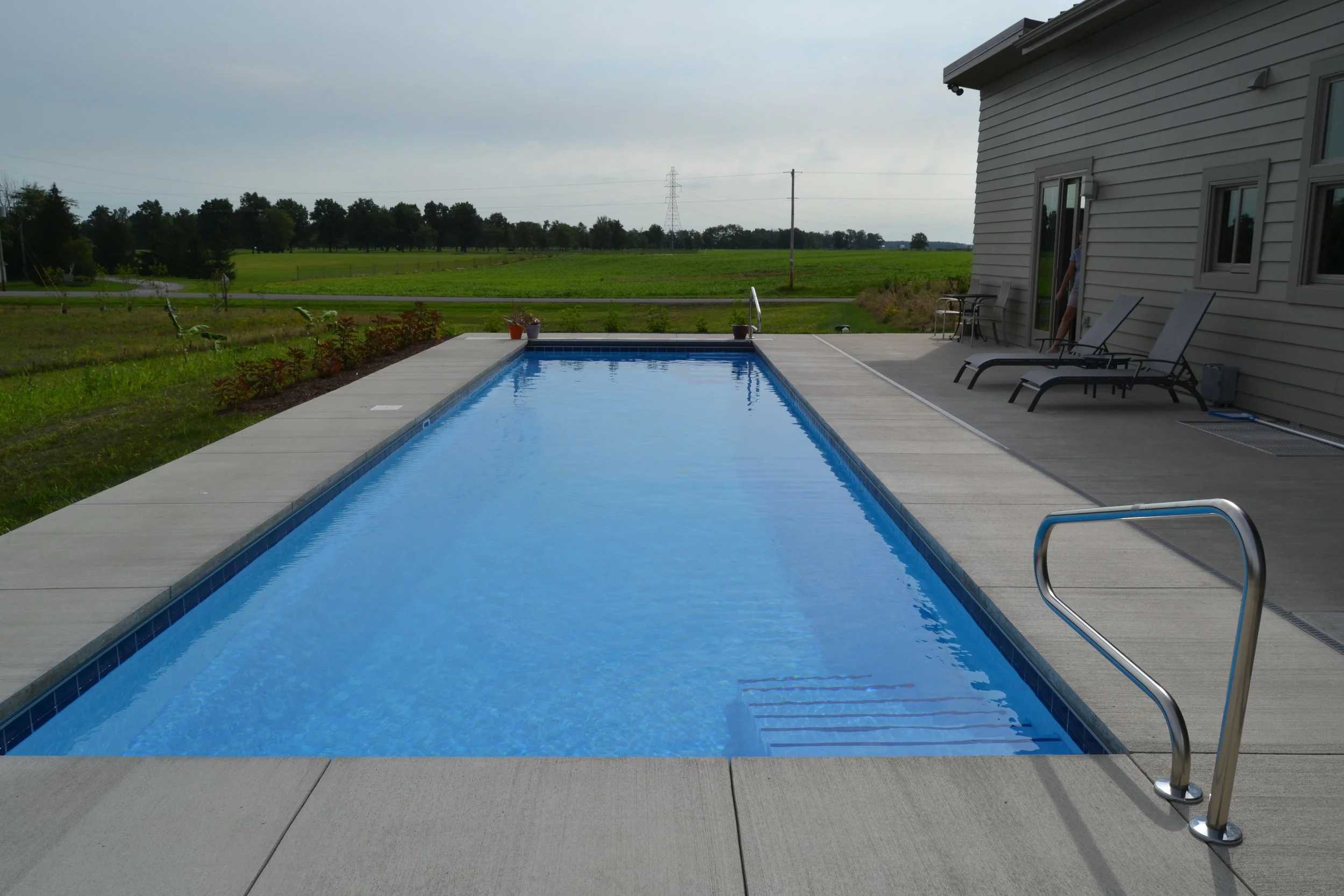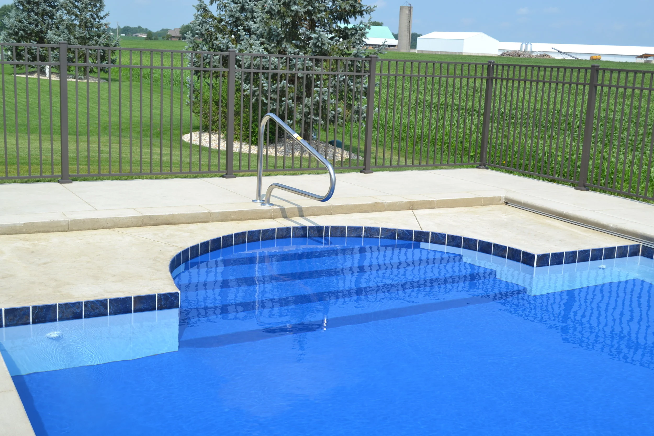 Fiberglass wall with automatic cover, recessed ladder and corner steps