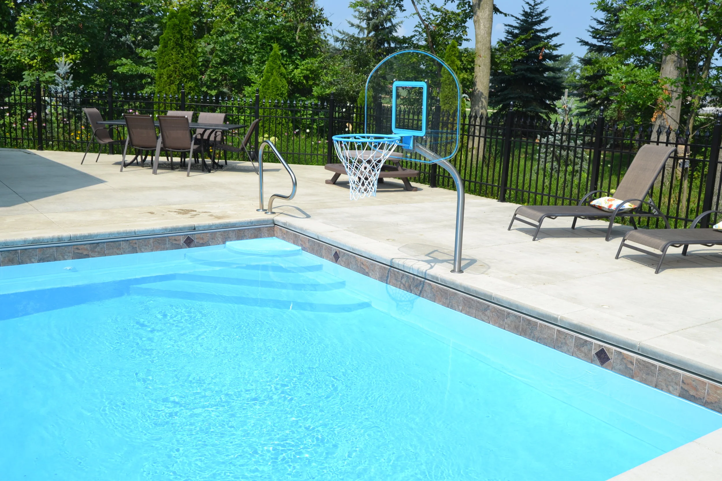 Fiberglass wall pool with Adrenaline slide and Inter-fab basketball game