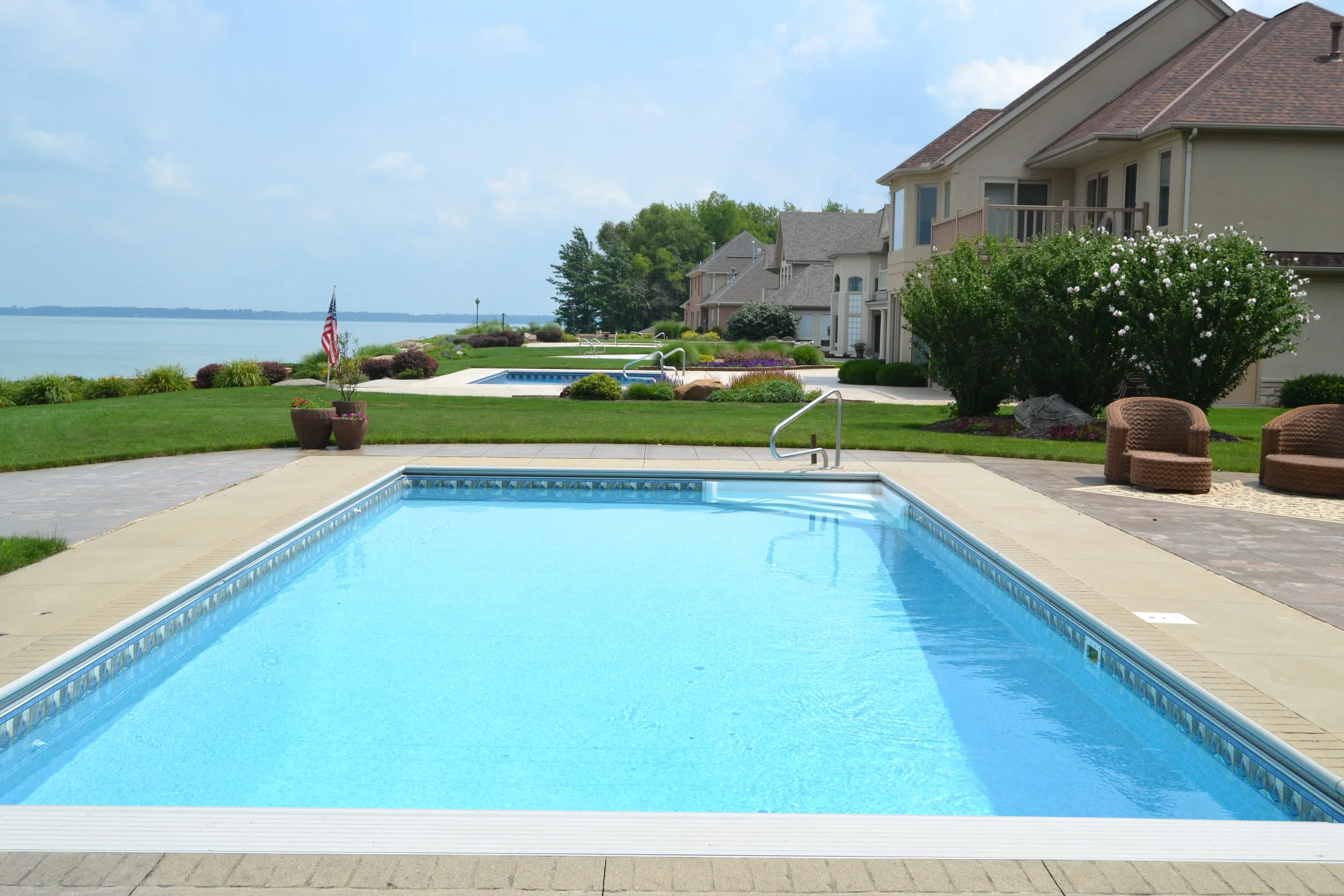 Viking pool with vanishing edge undertrack automatic cover with deck jets